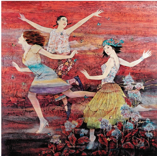 苏国伟 轻舞飞扬 160×160cm 获厦门2005'中国漆画展银奖(最高奖)、 入选第三届北京国际美术双年展(2005年)