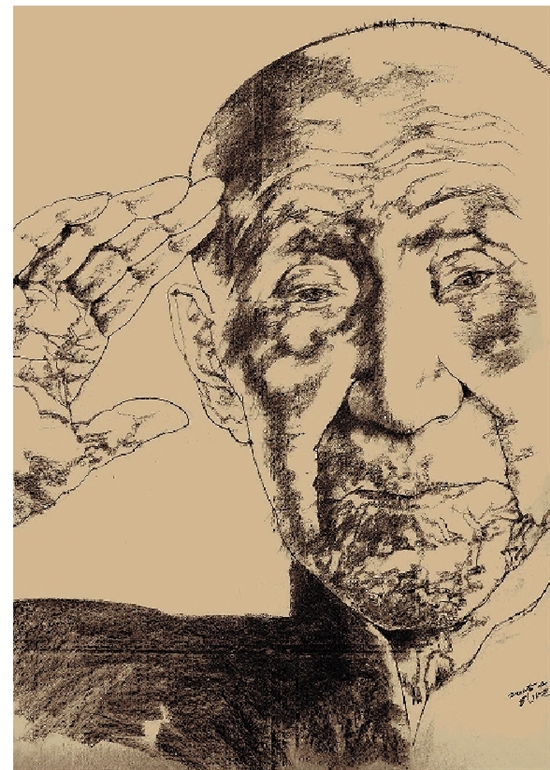孔维克大型水墨肖像创作《抗战老兵》精彩致意