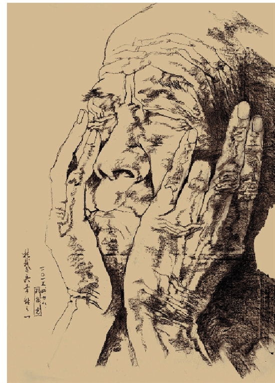 孔维克大型水墨肖像创作《抗战老兵》精彩致意