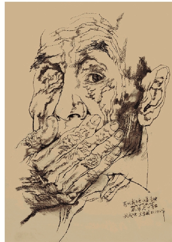 孔维克大型水墨肖像创作《抗战老兵》精彩致意
