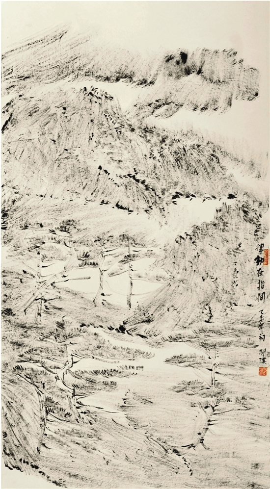 ▲邵璞 律动在指尖 90×48cm 焦墨 2015年