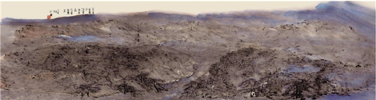 ▲邵璞 勇者竭其力 49×180cm 国画 2015年