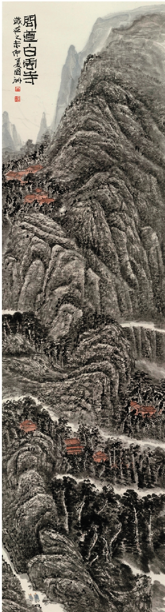 李国洲(四川省美协会员,美术报刘朴山水画名家班研修员) 问道白云寺 180×49cm