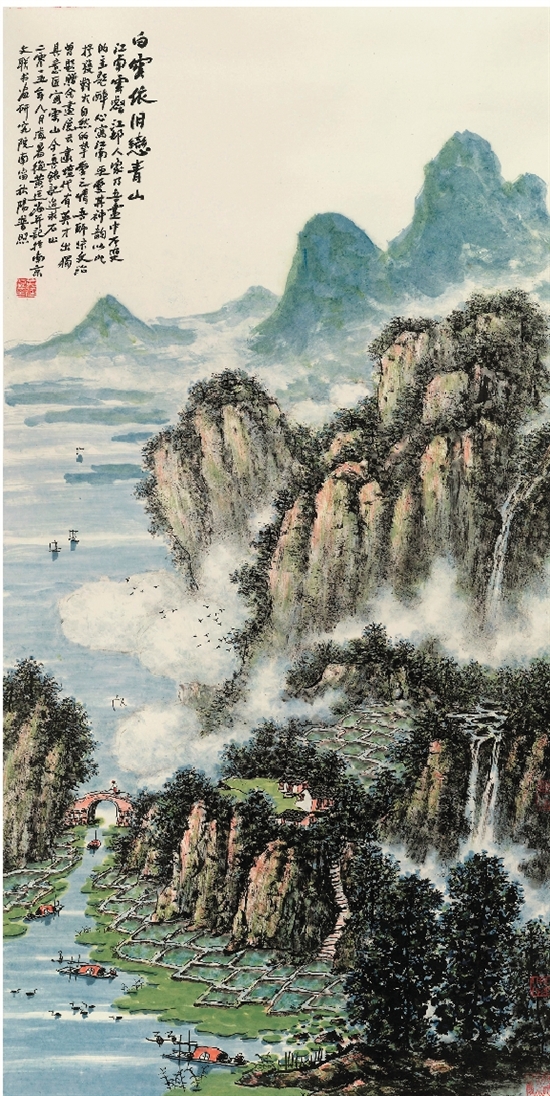 黄廷海(中国美协会员、国家一级美术师,南京市文联书画院副秘书长、美协副秘书长) 白云依旧恋青山 70×137cm