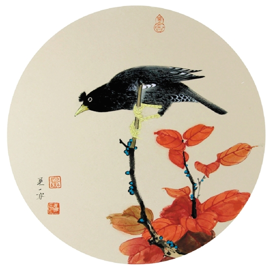 吴冰 花鸟作品 34×34cm