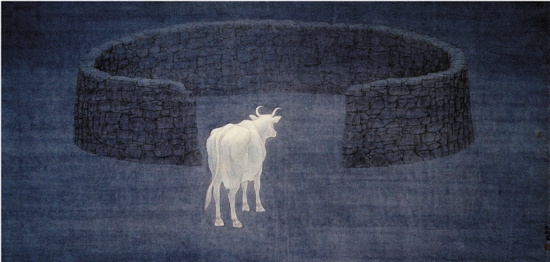 孙志钧 白牛 145×300cm 宣纸水墨 2014年