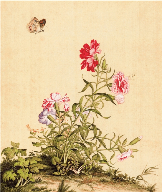 郎世宁 仙萼长春图册-虞美人与蝴蝶花 28.4cm×33.7cm
