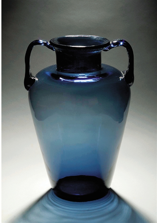 | 威廉姆·华根菲尔德(1900-1990) “慕尼黑”花瓶 1937年 华根菲尔德是包豪斯最重要的玻璃产品设计师,他的玻璃作品以无装饰的纯净之美著称。这件作品曾获得过国际大奖,当年,像这样大的玻璃器在世界上仅存两件,这是其中一件,当时只有德国具备这样的技术。“慕尼黑”花瓶通体由纯净的蓝玻材料构成,无任何多余的装饰。 |