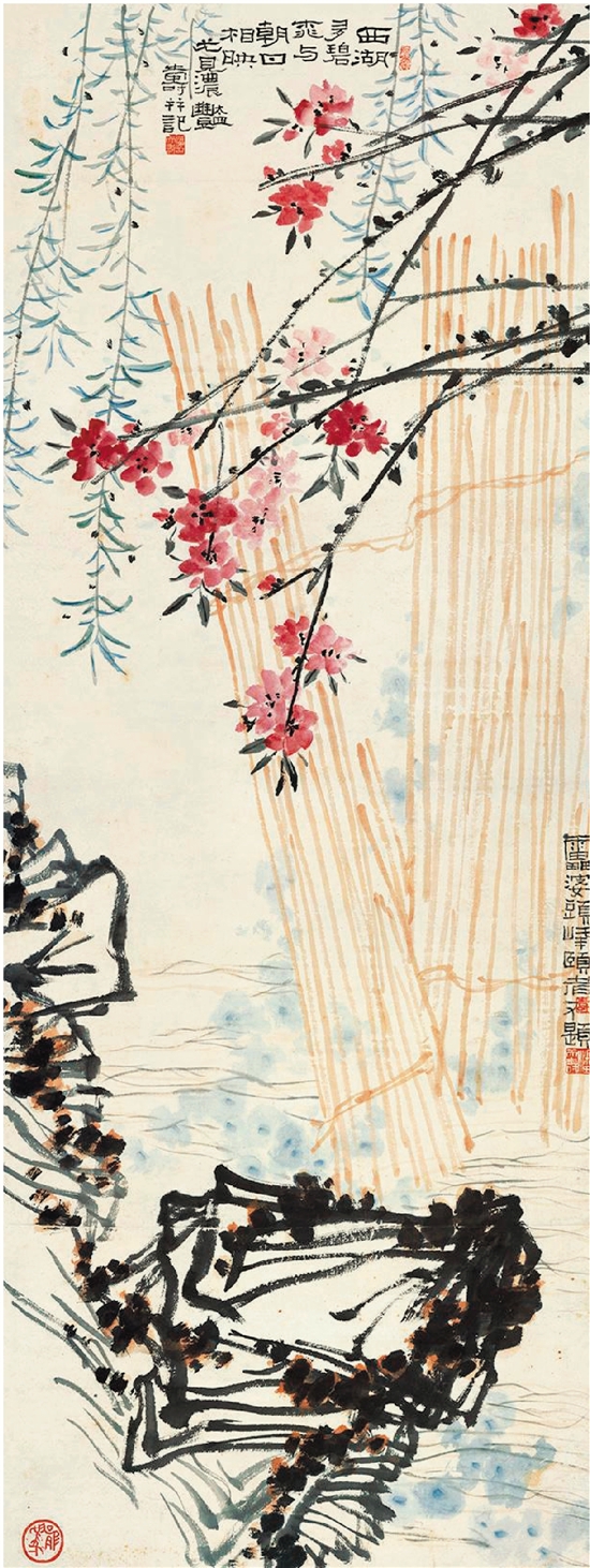 潘天寿 西湖碧桃图轴(二) 160.2×60.4cm