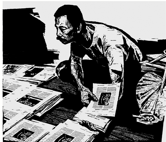 查世铭 拓荒者 58×69cm 木刻版画 1981年