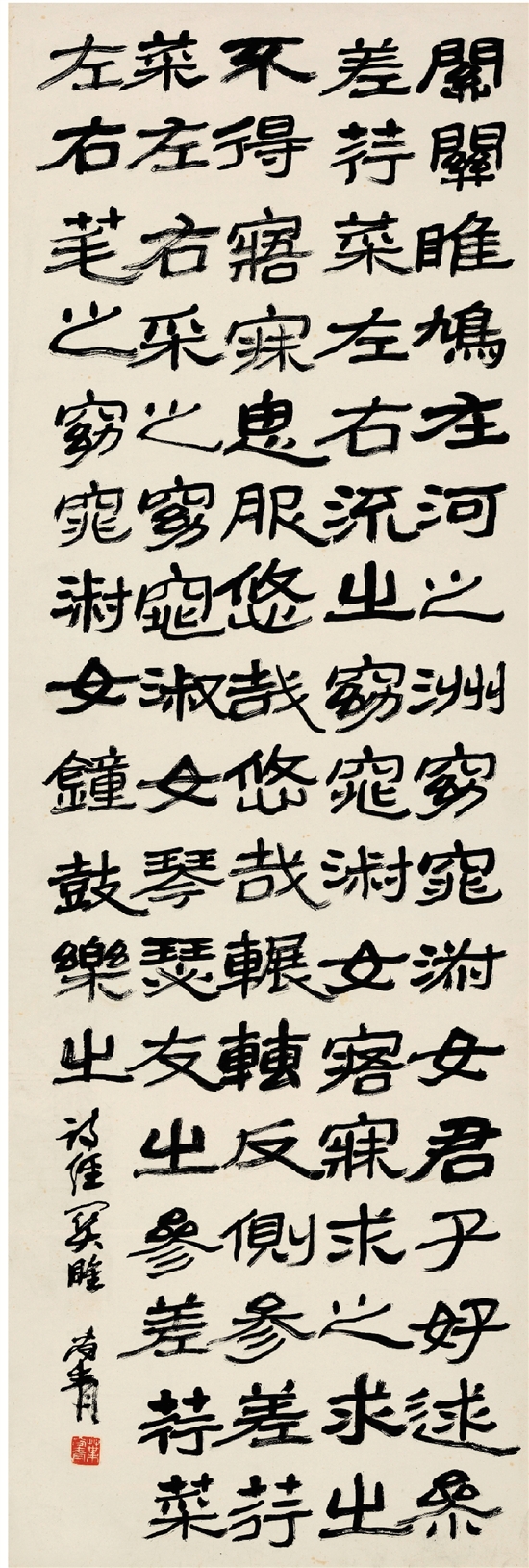叶尚青 关关雎鸠 142×47cm 隶书 1988年