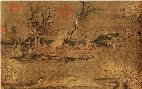 赵幹 江行初雪图(局部)