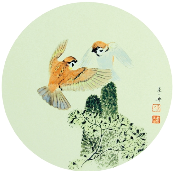 吴冰 花鸟作品 34×34cm