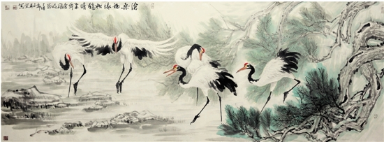 季承业 沧桑只缘松鹤情 240×100cm 2015年