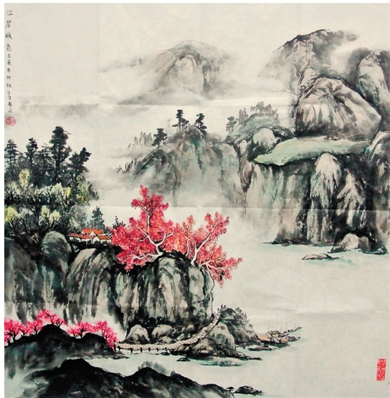 刘晓芳(10岁) 江岸秋色