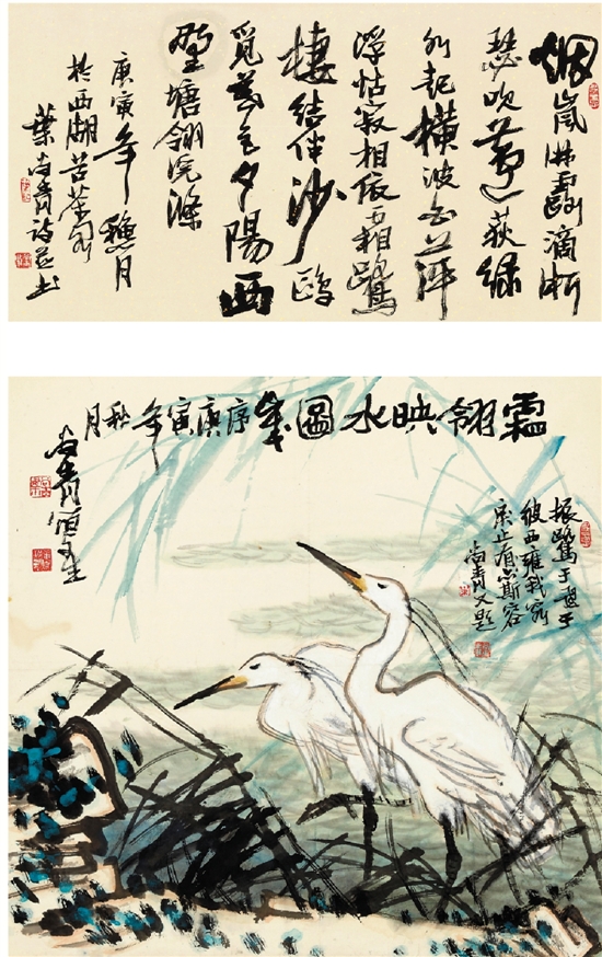 叶尚青 双翎映水图