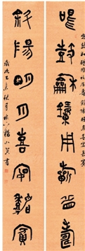 杨小贺 鸣鼓斜阳八言联 188×31cm×2