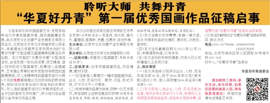 (一)本次评选将分别评出山水、人物、花鸟作品各前30名,将于2016年年初在《美术报》进行公布,每人将获赠2016年全年《美术报》一份。