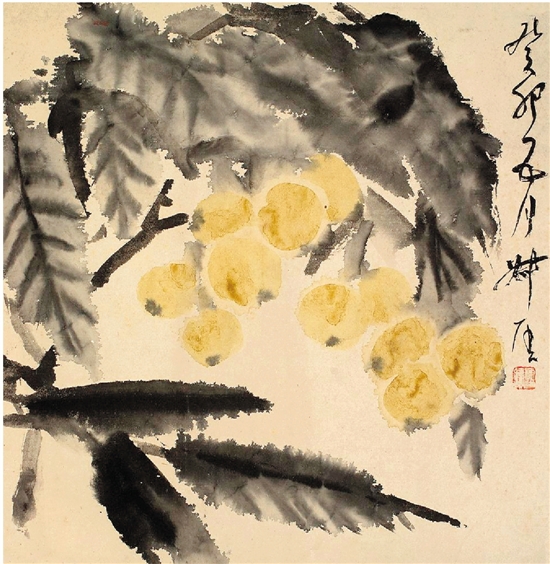 钱瘦铁 枇杷图 设色纸本 34.5×33.5cm