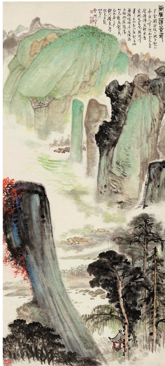 钱大礼 南雁荡景色 设色纸本 147×66cm