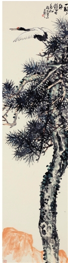 吴茀之 一声野鹤出长松 179×47.5cm 纸本