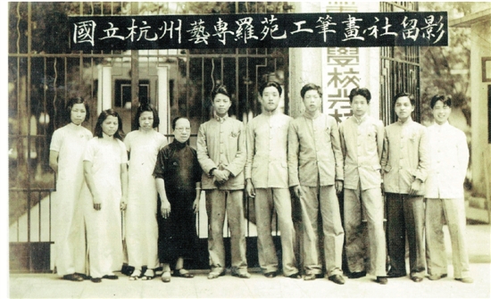 国立杭州艺术专科学校罗苑工笔画社留影(左四为张光)