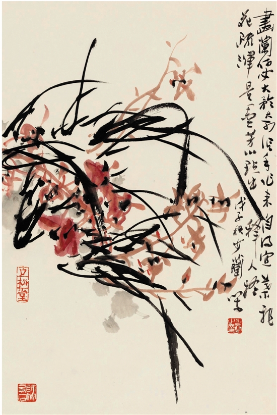 邢少兰 画兰何必太矜奇 信乎作来自得宜 叶飞花疏浑是墨 芳心点出释人疑