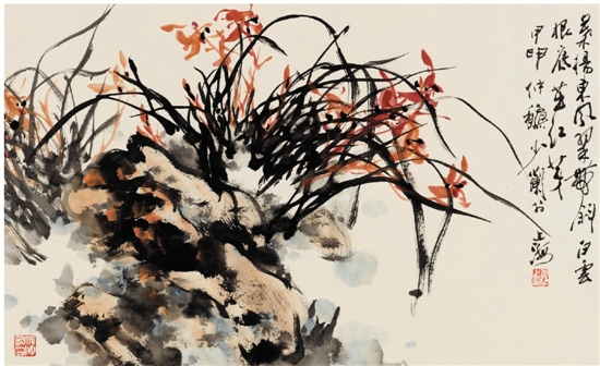 邢少兰 叶扬东风翠带斜 白云根底茁红芽 51×84cm 2004年