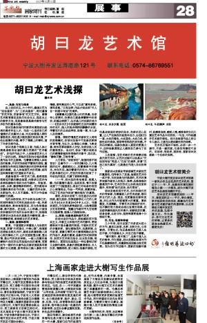 11月30日上午,宁波市大榭开发区举办上海画家大榭写生作品展开幕仪式,大榭开发区管委会常务副主任、党工委副书记陈召华出席并致辞,宁波市人大常委会原副主任、著名油画家陈继武,宁波市文联党组书记邹大鸣,宁波市人大常委会教科文卫民宗委员会副主任傅德伟及大榭籍上海著名画家胡曰龙等出席仪式,大榭开发区管委会副主任、党工委委员王志荣主持仪式。本次展览由宁波大榭开发区宣传部、宁波市美术家协会主办,宁波大榭开发区胡曰龙艺术馆、宁波大榭开发区书画协会承办。