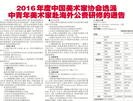 中青年美术家赴海外公费研修的通告