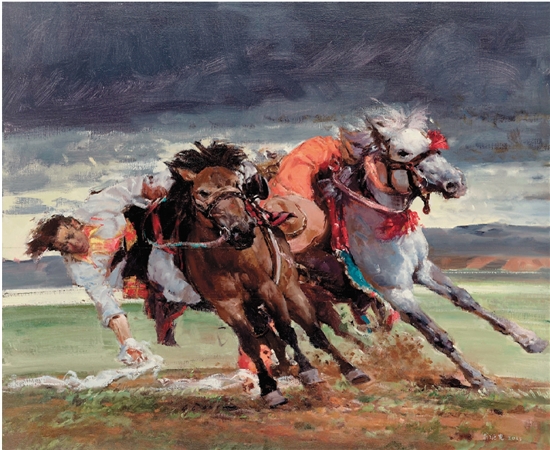翁诞宪 草原竞技 60×73cm 布面油画 2013年