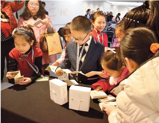 小朋友们在翻阅《大家小书·花鸟鳞介编》