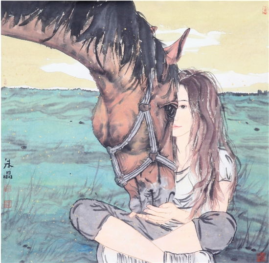 朱晶 少女与马系列二 68×68cm