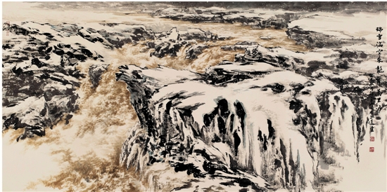 解安宁 瑞雪满空来 龙舞万里沙 248×129cm 纸本设色 2013年