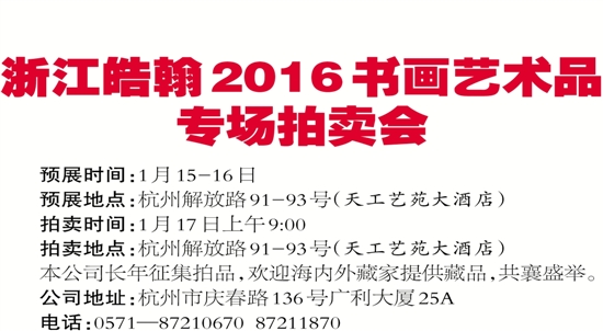 预展地点:杭州解放路91-93号(天工艺苑大酒店)
