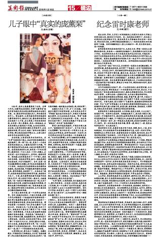 傅雷是父亲在法国的好友,傅雷是个极有才情的人。英文比英国人好,法文比法国人好,中文从古文到白话文都好得不得了。傅雷非常欣赏父亲,也最理解他。他写了一篇很有意思的文章《薰琹的梦》,我们如果不去翻史料的话是不容易看到的。傅雷以他的艺术观、美学观,去分析父亲的心态。傅雷写《薰琹的梦》至庞薰琹生命告终,整整52年,“薰琹的梦”早已破碎!如他是平平安安地生活,专心自由地创作,按他的“梦”走下去,那一定是20世纪现代美术史中重要的、有影响力的艺术家,因为当大多的中国艺术家还在沉睡、迷失中,他早已觉醒。正如傅雷说:“梦是醒不得的,梦醒就得自杀,不自杀就成了佛,否则只能自圆其梦,继续梦去。”人生如戏的哑剧,结局是,傅雷醒了,他走向自杀。父亲在痛苦中自圆其梦,继续梦去,直到1985年,享年79岁。