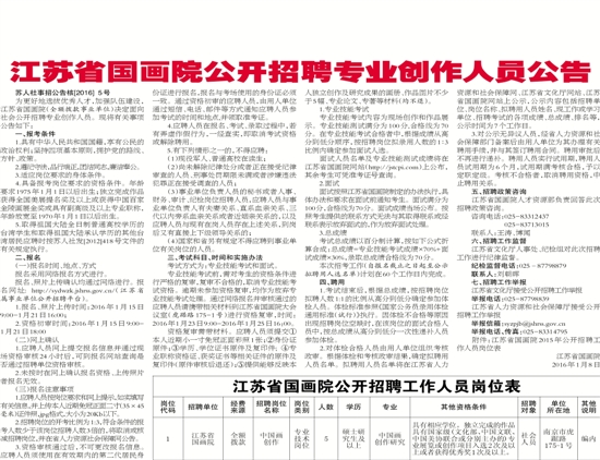 江苏省国画院公开招聘专业创作人员公告