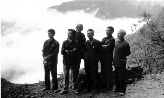 彭德、皮道坚、周韶华、沈鹏、鲁慕迅、陈方既1982年神农架美术理论会合影