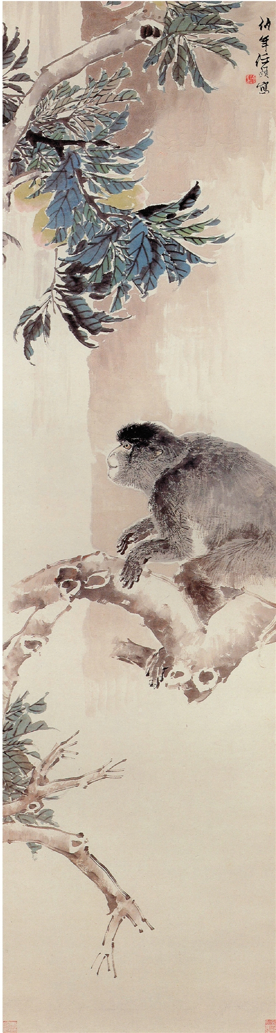 清 任颐 桃猴图 147×40cm 故宫博物院藏