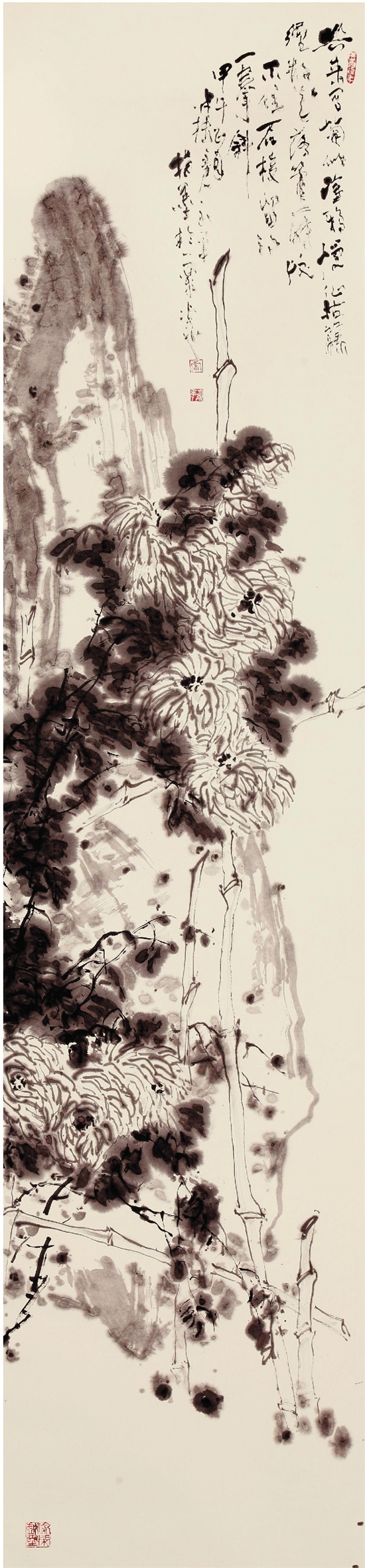 李永平 兴来写菊似涂鸦(指墨) 240×55cm