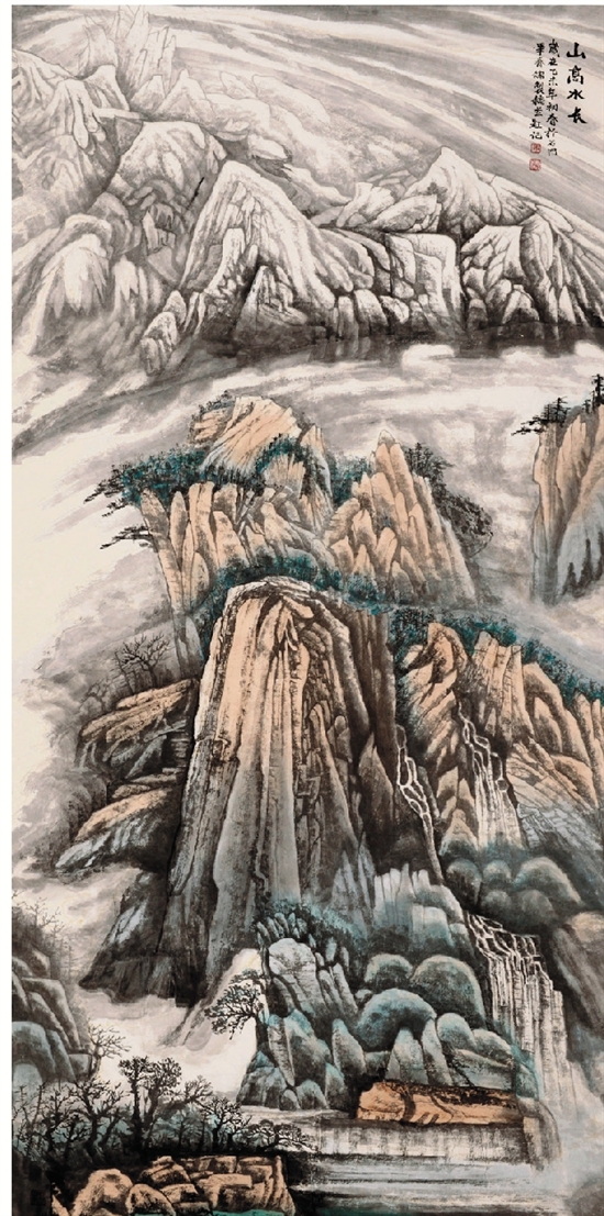毕春儒 山高水长 129×248cm