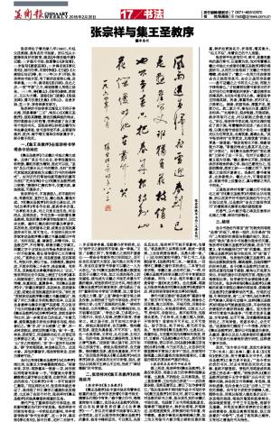 张宗祥平生多写行书、草书,故最有影响的是行草书,以晋唐为宗,他对有着集王羲之书法之大成者的《集王圣教序》等的深度研习,从而充分汲取到了王羲之书法的精髓,体会到了:“羲之一生用力尽在修饰去古之拙而存其巧,去古之疏而存其密……是可证羲之之书同古人之法,而致力于修饰者也。”才能看到初唐书家学王的不足对他们也有着深刻的剖析:“虞世南学王而得其拘,如《尚书宣示》之类。褚遂良学王而得其媚。拘者,厚重有余,流利不足,力胜韵也。媚者,流丽有余,厚重不足,韵胜力也。然二家之书,褚与王分道,虞犹不自标异。”“北海学王,规步矩趋,无敢或缺,然亦有取巧之处,时以倾侧之势救力弱也。”所以,张宗祥书学北海,但对北海的短处了然于胸,有着精辟的论述:“余之论北海,以谓北海守成法而少变化……故董香光以为右军犹龙,北海犹象,真确认矣。”其中张宗祥对“右军犹龙,北海犹象”的涵义更是一语道破:“惟龙故变化不测,惟象故致力不倦。”李邕的特点也是其不足之处,即“少变化”。而《集王圣教序》的“变化莫测”正弥补了这一不足。他对于王羲之之意义极为明确:“羲之最神化不测,用笔结体亦未敢舍师承之学、独出己意而为之,但删削弊病,悉求工妙……自羲之而下,皆用羲之之法而不逮者也。当是时,善书者虽多,立异者绝少。羲之之力,可谓绍前启后,若就书学上位置论之,真与儒家之有孔子同矣。”