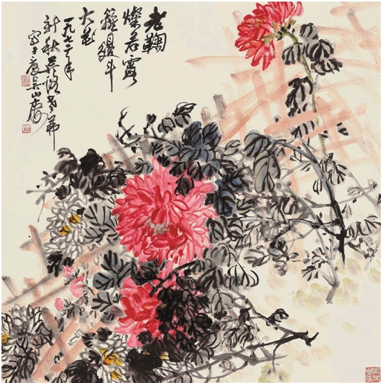 吴茀之 篱菊图 69×69cm 1972年 浙江美术馆藏