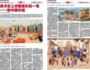 在1965年1月全国第4次美展华东地区作品的展览大厅里,山东的几幅年画作品引起了广泛关注,这些作品分别是:吕学勤的《三代民兵》,白逸如的《好书记》,李百钧的《女炮兵班》,王辉亮、郝丕瑜的《景阳岗十姐妹》等。蔡若虹看过展览后兴奋不已,当月便写了《山东年画有三好》刊登在1月号的《美术》上,文中称:“山东年画的题材内容好,就因它着重地表现了山东好汉的英雄气概,表现我国劳动人民的精神,表现了社会主义革命和社会主义建设的无比巨大的力量”。从整个60年代的年画创作和理论探讨情况来看,创作者和领导者都已不再像50年代那样强调作品适应和服从群众需要,而是更强调典型性、主题性和革命性;对于学习民间传统的问题,也不同于50年代后期提倡的汲取吸收,而是强调“采取什么手法,要由内容决定”,“装饰性,比之现实性来说,终是较为次要的”,要“推民间年画的封建之陈,出社会主义之新”。这些说法本来是没有问题的,但此时从理论家到作者都将政治思想问题作为创作中一切本体问题的前提,加上1958年之后对“革命浪漫主义”的强调,导致年画所表现的“现实”生活越来越远离“现实”。