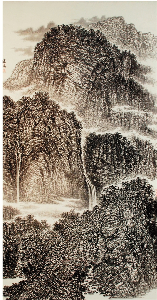 罗小波 岩壑飞瀑(中国画)