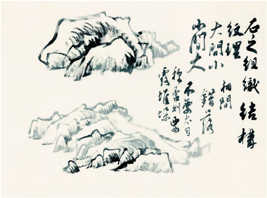 石之组织结构纹理,大间小,小间大。相见错落,不要太匀称,否则要露堆垛。