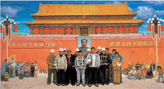 孙滋溪、孙路 天安门前90年代 155×285cm 布面油画 2005年