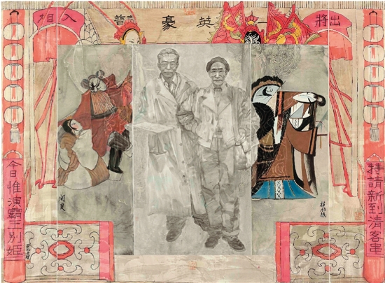 王 赞 林风眠与关良欣赏戏曲艺术 国画 178.×240cm