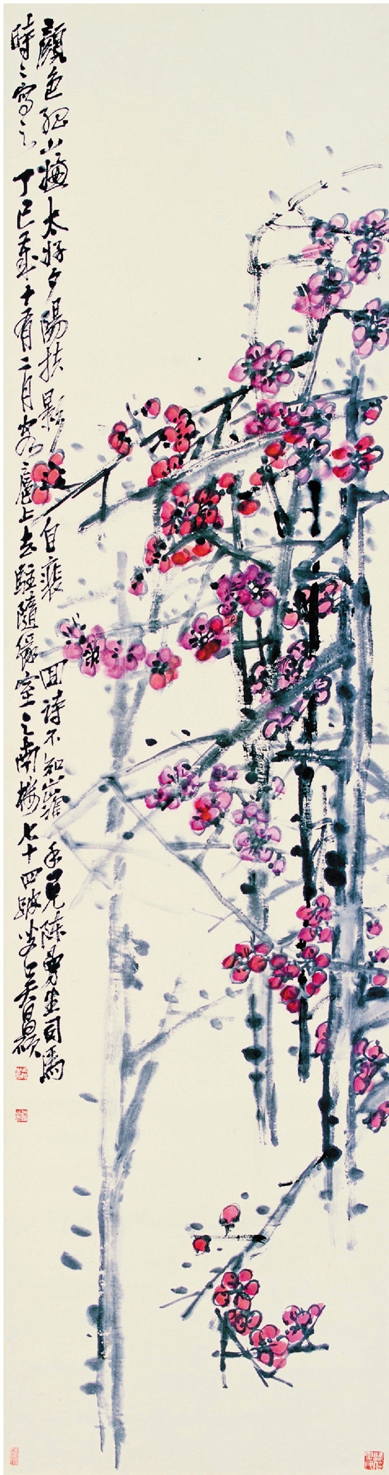 吴昌硕 红梅图 1917年作 纸本设色 164×43cm