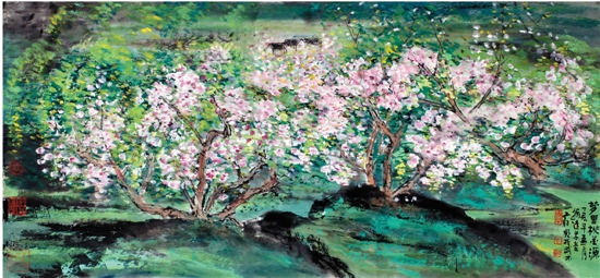 蒋频 梦里桃花源 国画
